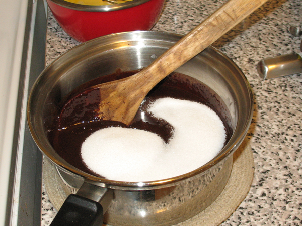 - then add brown sugar, cloves, and water