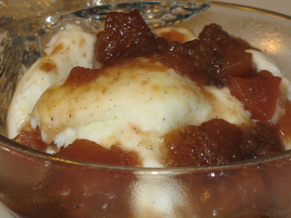 Imagine a warm bowl of apple sauce, with chunks of apple and pear, spiced with cinnamon, cloves, and vanilla bean. While it’s cooking, the most tantalizing smell will have you finding excuses to linger in the kitchen. A sweet topping so warm that it melts the frozen yogurt underneath.