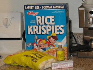 After unsuccessfully scoping both the baking aisle and the junk aisle at the store, I called my mother, who consulted her neighbour, and they determined marshmallow crème is marshmallow fluff, and I should find it with the pre-made chocolate sauces for ice cream. (Thanks Mom!)