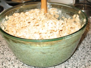 I waited until the white chocolate and fluff had been combined before adding the crumbs.