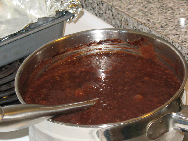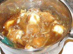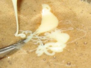 See those dark flecks? That is burnt sugar from the bottom which happened because I don’t have a heavy-bottomed pan.