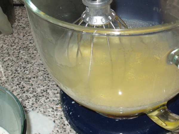 2. Combine egg yolks, sugar, and salt. Using speed 2 for 30 seconds is enough.