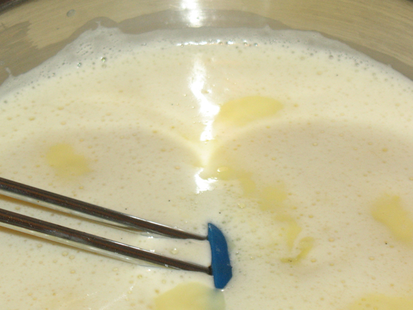 9. In one pour, add the entire chilled mix to the running mixer (if the mixer is stopped your ingredients will flash freeze to the side of the bowl).