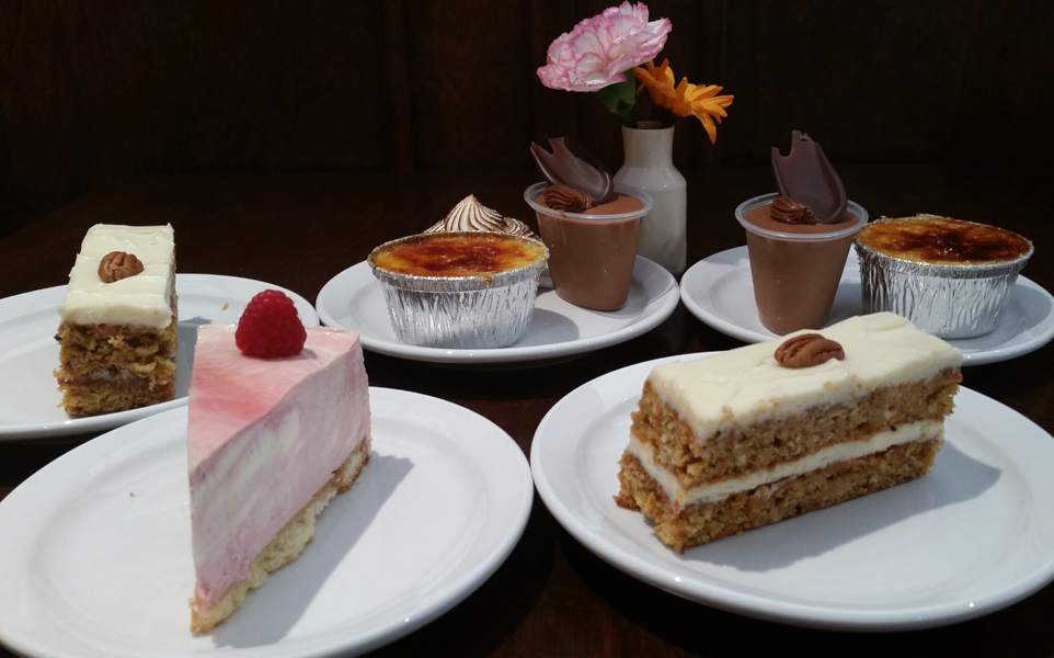 We had just eaten dinner with my family, so we ordered dessert; carrot cake, raspberry cheesecake, crème brûlée, chocolate mousse, lemon tart, and coffee. Yes I know. Totally sinful. It all looked so good and I couldn’t decide on just one thing.