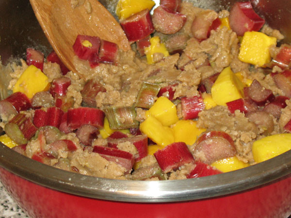5. Cut in brown sugar and oats. My pastry blender got gunked up by the oats so I used my hands for this part.