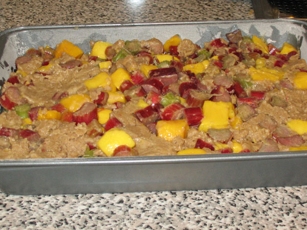 8. Cover with remaining topping mixture. It doesn’t really crumble, but you can pinch it apart and drop it randomly, it’s not supposed to be completely covered so it doesn’t matter if there are gaps.