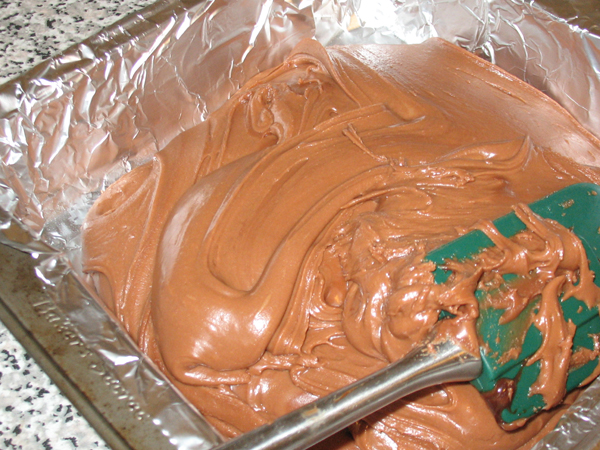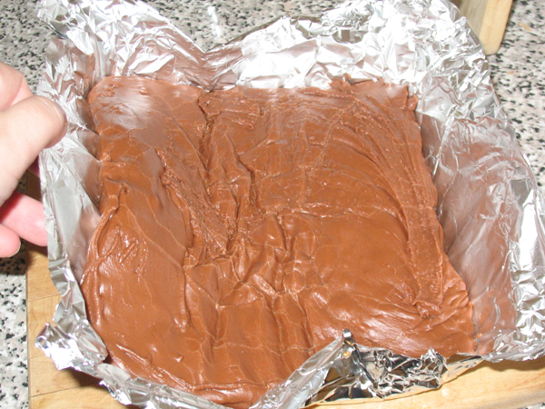 8. Pour into prepared pan and let sit at least 4 hours. Hmmm, air bubbles. I don’t remember air bubbles in fudge before.