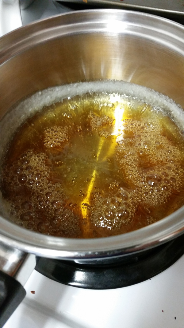 4. Once mixture reaches 238°F / 114°C, remove from heat. It takes a long time for the sugar to reach the correct heat, mine took about an hour. Hence the beer.