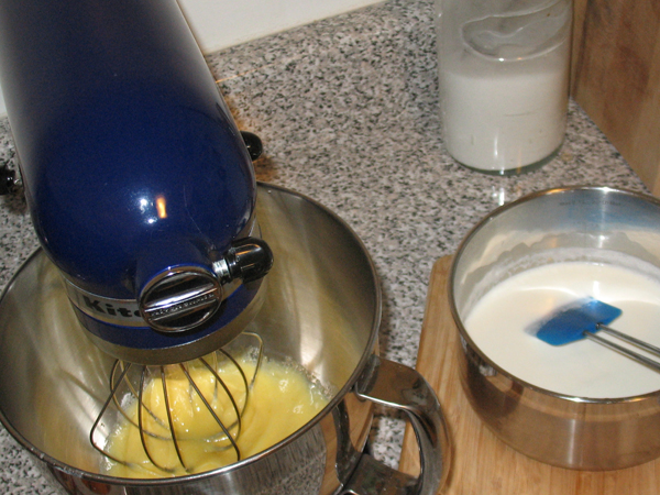 2. In mixing bowl, whip the yolks and sugar until just combined.