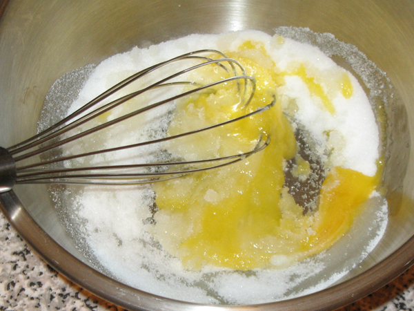 4. Make the cake; this is where I screwed up. You’re suppose to cream everything except the flour and eggs together. I put all the dry ingredients plus flour together first. Ooops. Then add the eggs one at a time.
