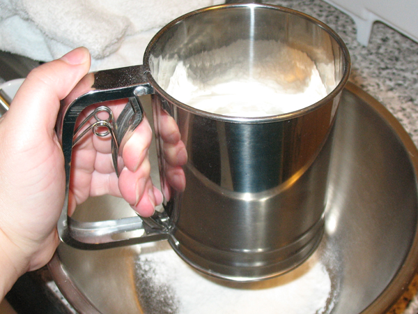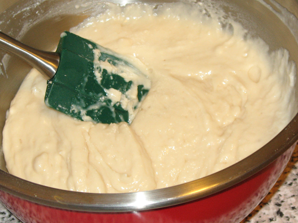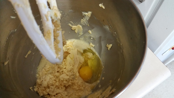 6. Add half the flour (hah) to butter mixture, half the milk, repeat. Beat til just combined. Get a face shot of milk when the mixer goes crazy.