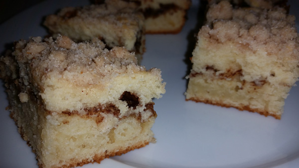 I love coffee cake. Especially Starbucks’ coffee cake. I found this recipe and tried it out, and it’s delicious. I screwed it up and did it backwards but it still turned out marvelous!