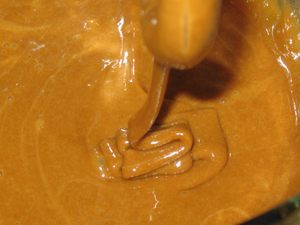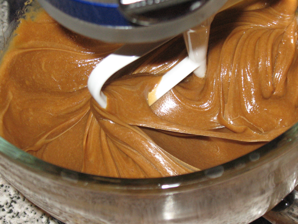 As the beater turns, the fudge will collapse in on itself to fill any void in the bowl. This flowing action will never actually stop, you can’t judge when the fudge is done by watching the beater in motion, you have to lift it.