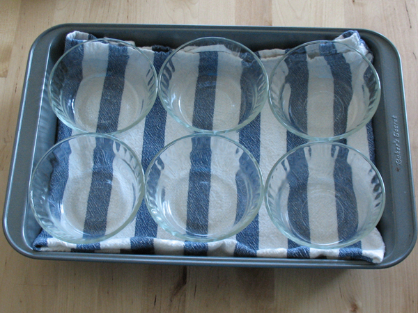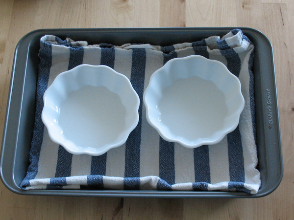When you’re preparing custards in individual ramequins, it’s a little different. Line the pan with a dish towel will prevent the ramequins from slipping around.