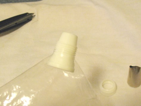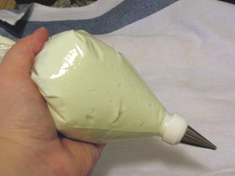 I learned this trick from the Fend For Yourself household. As long as your grocery store sells milk in plastic bags, you’re in luck. Once the milk is gone, you have an empty bag which is the perfect size and shape for a piping bag, and strong enough to hold up to piping without tearing. Score!