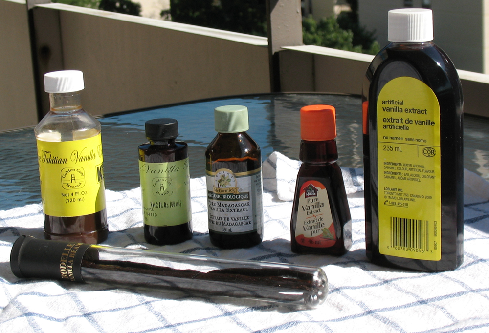 - artificial vanilla extract – cheap, contain sugars, caramel colouring/flavour, and synthetic vanillin which is a byproduct of the pulp industry – YUCK
