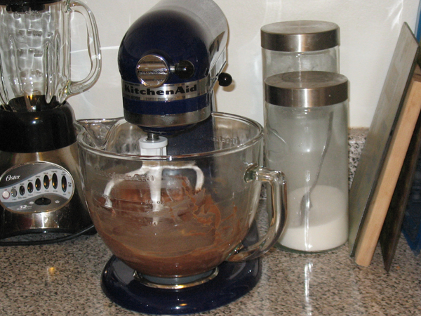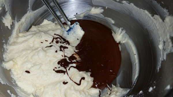 3. Add chocolate and keep beating until well-combined. Beat on High about 2 min.