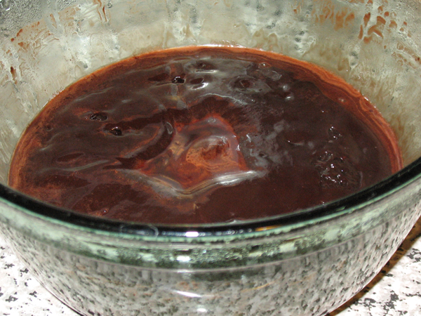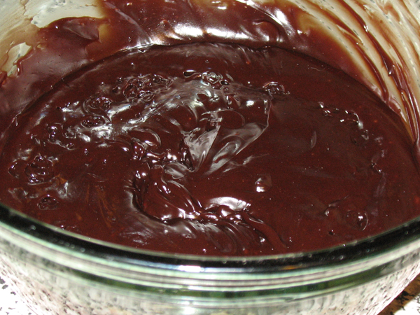 3. Gradually add the heated mix to the sugar, (I used a strainer since a skim developed). Once all the hot mixture has been added and the mixture is combined, return it to the sauce pot.