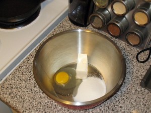 Step 4- in a large bowl, cream shortening, sugar, and egg, until fluffy.