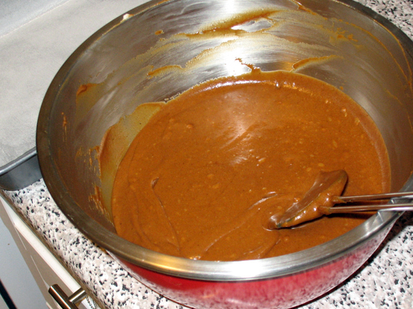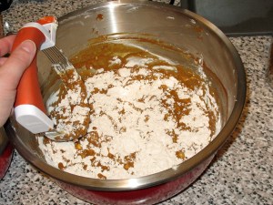 I used a wire whisk to blend the dry ingredients, and before I measured the molasses, I sprayed a light coat of Pam into the measuring cup. (Works like a charm when you’re dealing with sticky ingredients like this or peanut butter.)